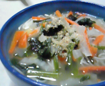 今日使ったのは、白菜、人参、ほうれん草、ねぎ、わかめ。です