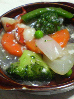 ブロッコリーとスナックエンドウとエビが入っていて塩味のあんかけが入っていたので