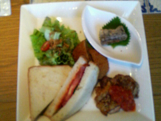 ワンプレートのランチで飲み物とデザートがついていました。
