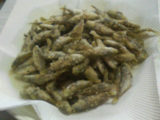 洗った小鯵に塩コショウを振りかけ片栗粉をまぶして揚げるだけvv